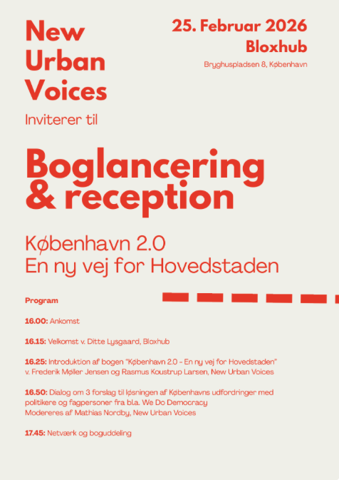 (Event held in Danish) Come and join us when we, together with New Urban Voices, launch the book Copenhagen 2.0 and invite you to a dialogue with professionals and politicians about the future of the capital.