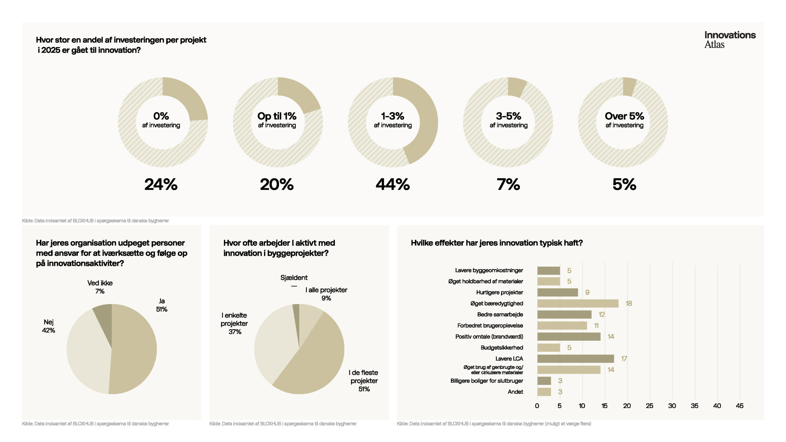 Welcome to The Innovation Atlas! The first editon maps where and how innovation happens in the Danish construction sector, what drives it, and what it takes for new solutions to be repeated and scaled. It presents insights from developers who are already changing practice and identifies replicability as one of the key solutions for turning innovation into lasting industry impact.